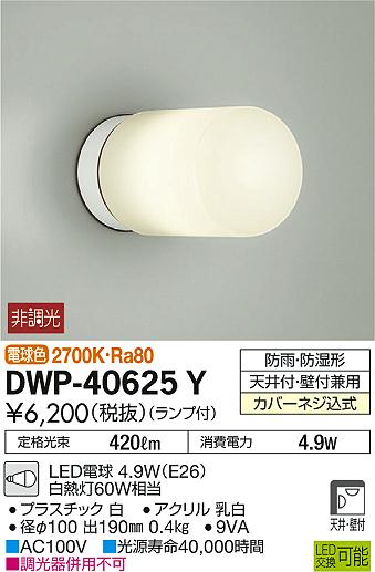 無料プレゼント対象商品!エクステリア 屋外 照明 ライトダイコー 大光電機 【 ポーチライト DWP-40625Y 白 電球色 白熱灯60W相当 天井付・壁付兼用 丸型 デザイン 電球色 LED ブラケットライト ポーチライト