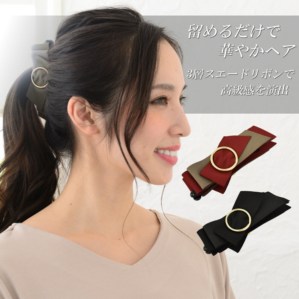 商品名(末尾vi-型番) (ヴィラジオ)Viragio バナナクリップ リボン 大きめ ヘアクリップ 大 シンプル ヘアアクセサリー 髪留め 髪飾り 大人 上品 vi-1322サッと留めれば大人可愛い・上品・華やか! 高級感漂う3層に重なるリボンデザイン 季節感のあるスエード生地が秋冬コーデを格上げ 選べる3カラーバリエーション 滑り落ちたり緩んだりしにくい バナナクリップ土台を使用。