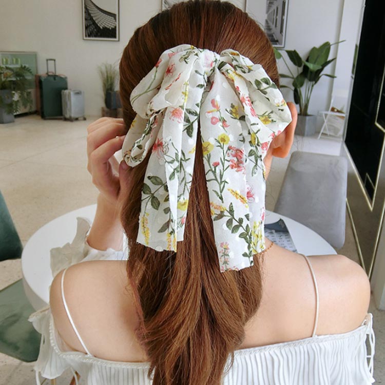 シフォンリボンが甘すぎない大人可愛いバナナクリップ。
