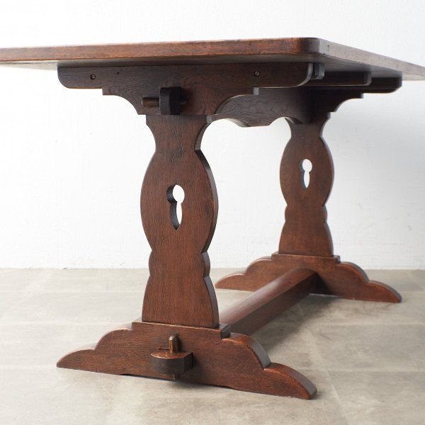 僧院や学院のテーブルをルーツとする為、狭義では二枚の面脚を抜きで結んだ型状の西欧アンティークスタイルの大型テーブルを指します。