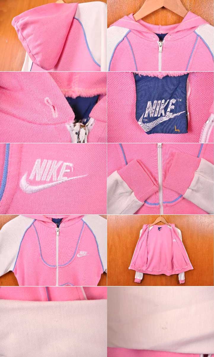 ヴィンテージ 1980年代 紺タグ / NIKE ナイキ / フルジップ スウェットパーカ / ピンク×オフホワイト×ベビーブルー / レディースS相当【中古】▽