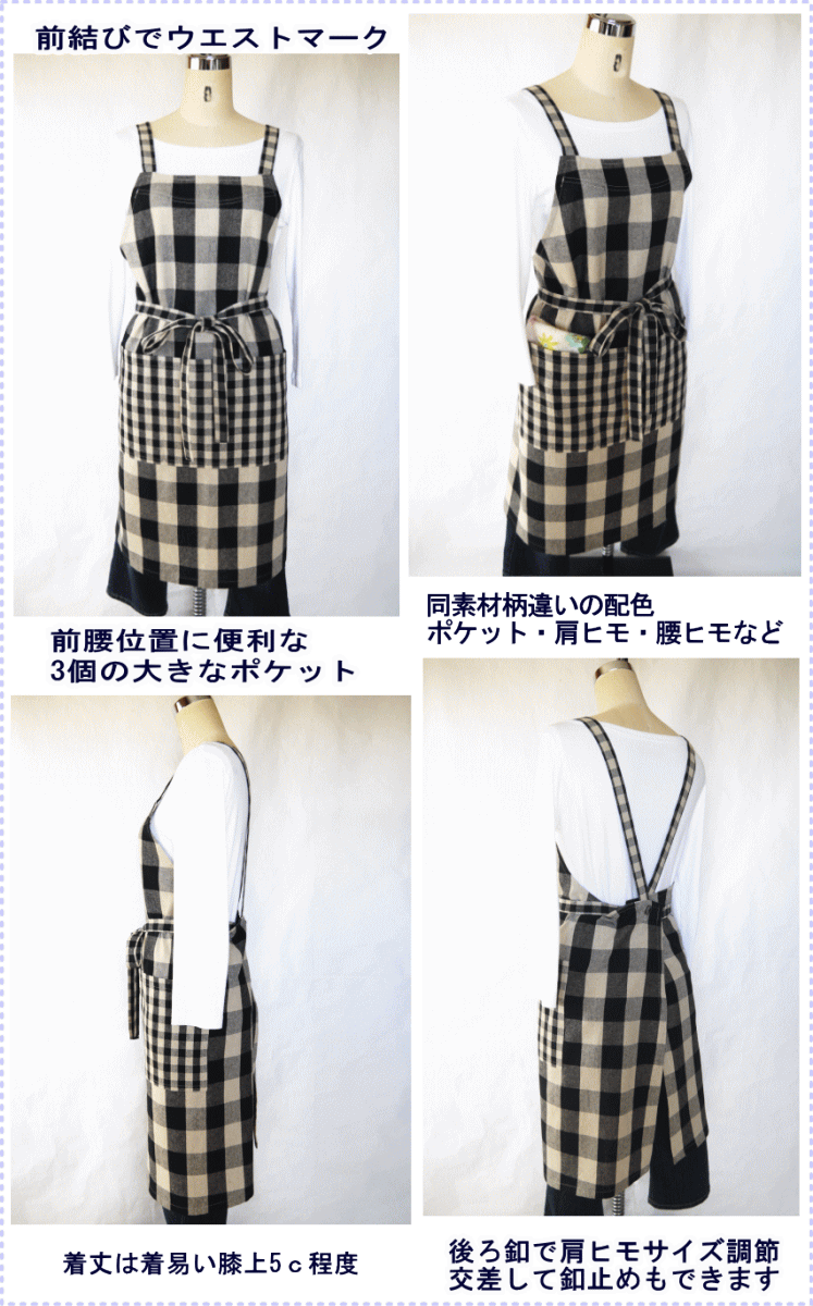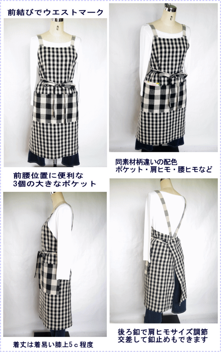 【あす楽】 エプロン おしゃれ かわいい 男女兼用 大きいサイズ ギンガム 母の日 父の日 手作り ハンドメイド 日本製 ギフト ナチュラル 綿 キッチン用品 配膳用品 キッチンファブリックエプロン