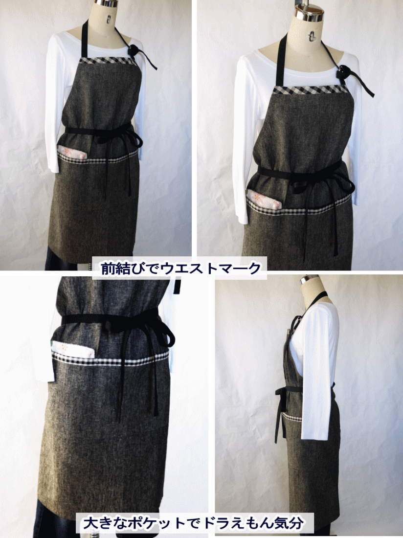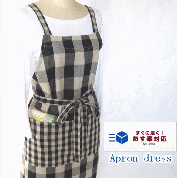 【あす楽】エプロン おしゃれ かわいい リネン ギンガム 大きいサイズ 母の日 日本製 ギフト ナチュラル 綿 キッチン用品 配膳用品・キッチンファブリックエプロン