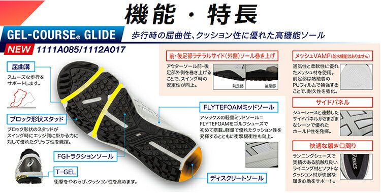 asics GEL-COURSE GLIDE 1112A017ランニングシューズの様に軽量で歩き易いスパイクレスシューズ■素材:(アッパー)合成繊維+人工皮革、(アウターソール)ゴム底■サイズ:23.0〜25.5cm(6サイズ)■重さ:約270g(片足23.5cm)■カラー:メトロポリス/ホワイト(020)、オーキッド/ホワイト(500)●MADE IN VIETNAM●2E相当【メーカー取り寄せ商品】在庫の有無・納期は改めてご連絡させていただきます。