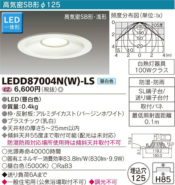 LEDD87004N(W)-LS 東芝ライテック の商品の詳しい仕様はメーカー受付窓口/HPにてご確認ください。