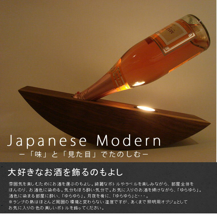 常川 貴扶※ランプの熱はほとんど周囲の環境と変わらない温度ですが、あくまで照明用オブジェとして、お気に入りの色の美しいボトルを飾ってください。